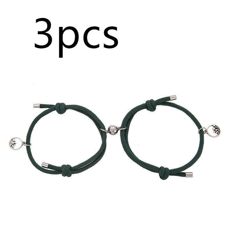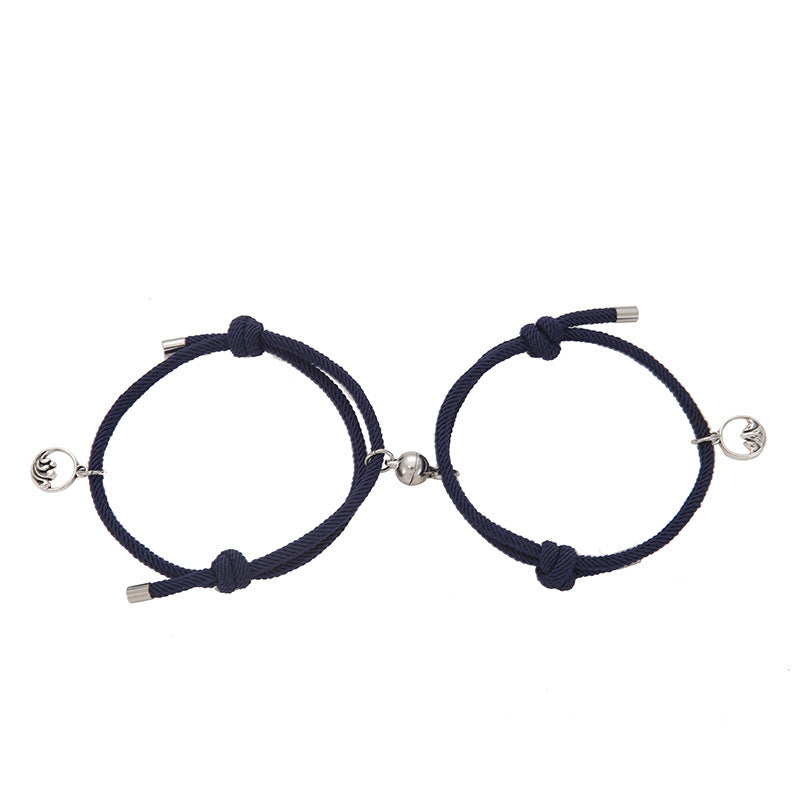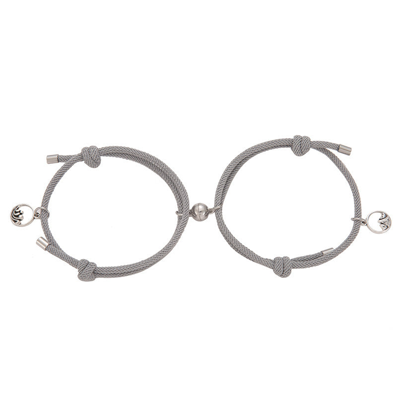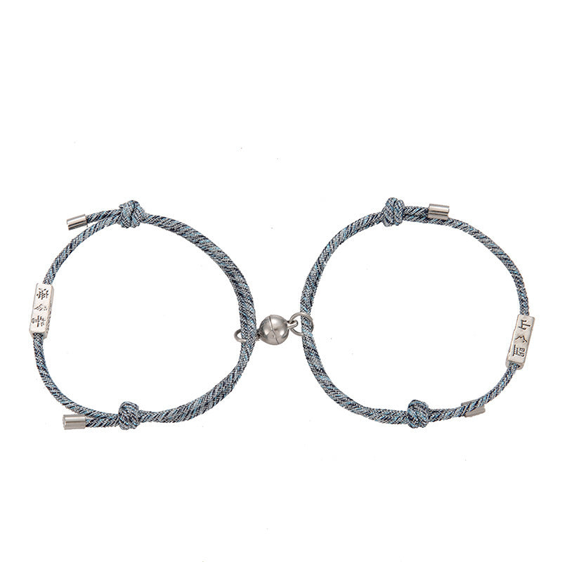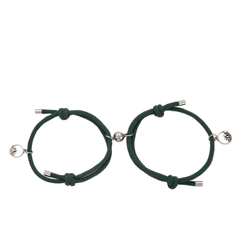 The couple's braided bracelet uses a magnetic buckle design. Once they are close together, they will be connected to each other.