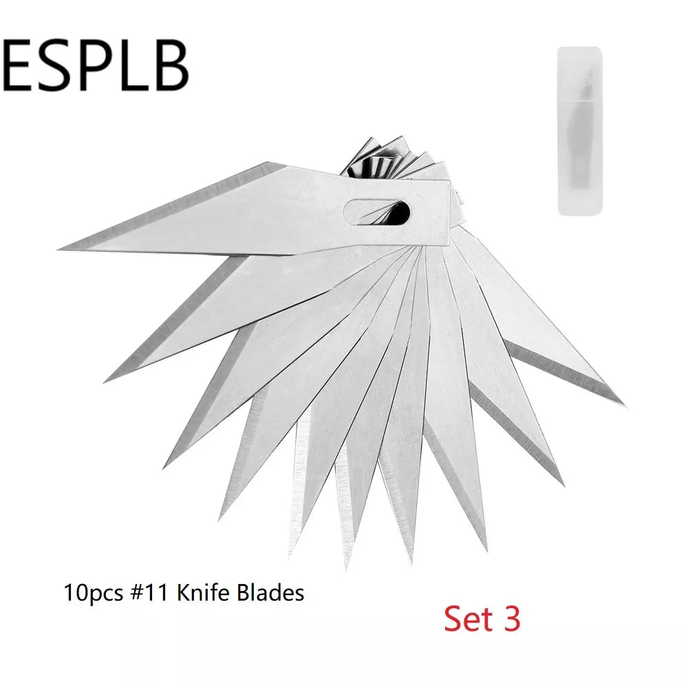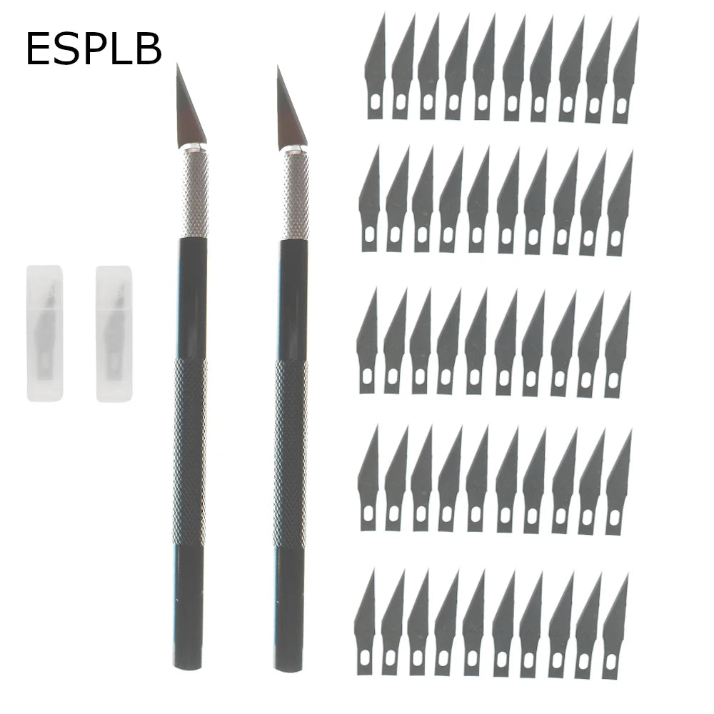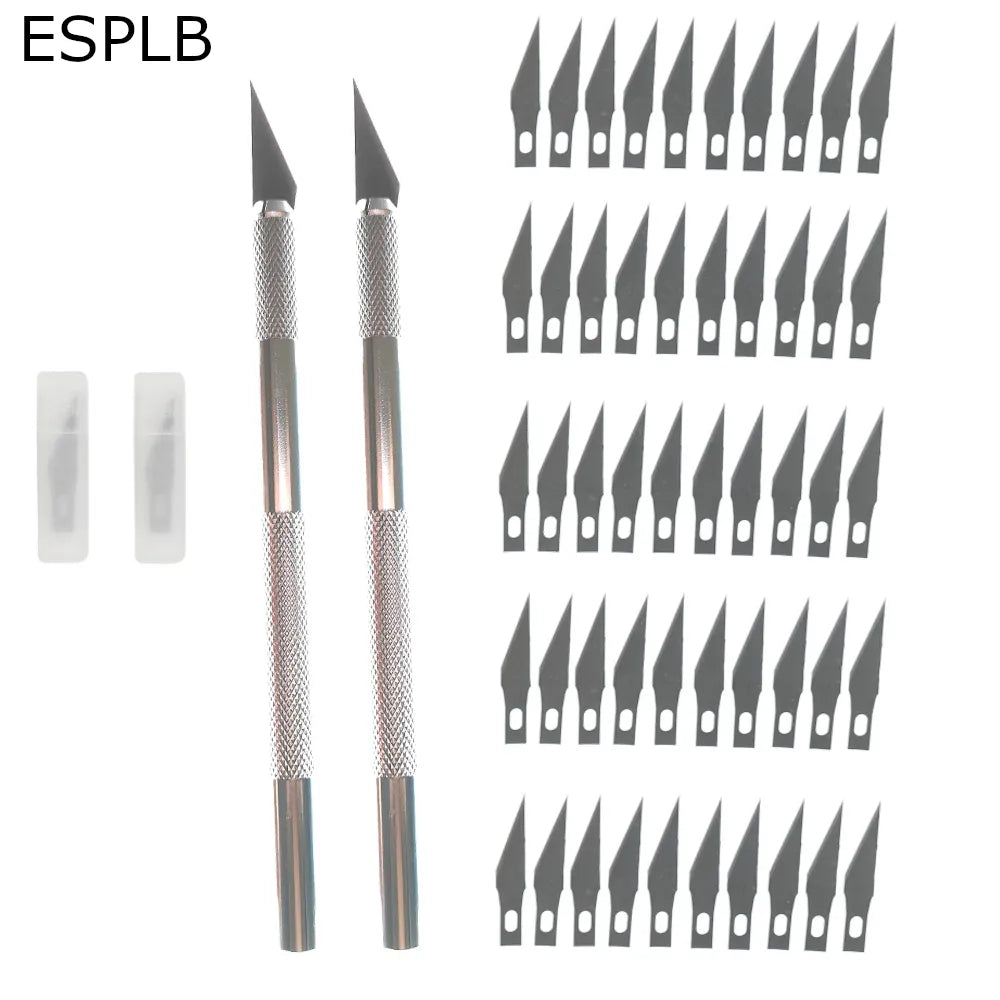 Engraving Non-Slip Metal Scalpel Knife Kit + 50/20/10/5pcs #11 Blades Cutter Craft Knives for Mobile Phone PCB Repair Hand Tools