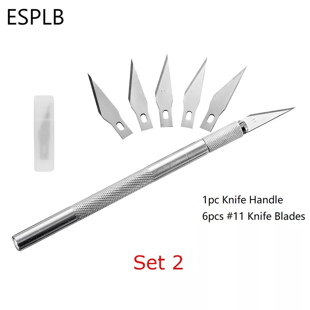 Engraving Non-Slip Metal Scalpel Knife Kit + 50/20/10/5pcs #11 Blades
