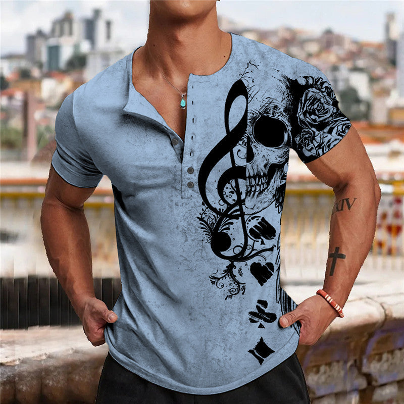 Music Symbol 3D Digital Printed V-neck Short Sleeve Button Placket Street