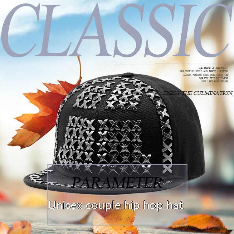 Punk Hip Hop Metal Rivet Flat Brim Baseball Cap