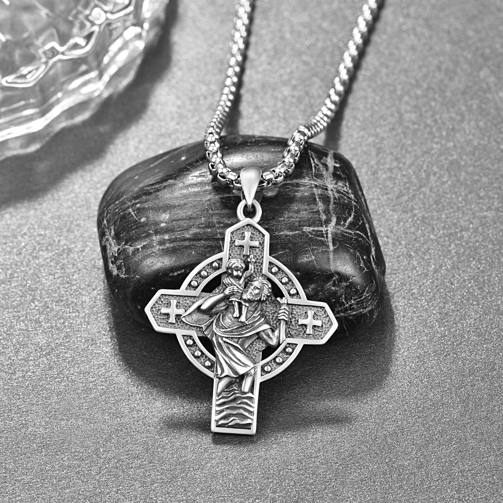 925 Sterling Silver: St. Christopher Pendant is crafted of 92.5% sterling silver. The chain is made of stainless steel. Exquisite polishing process, high polished, will not appear dull after a long time wearing. It's nickel-free, lead-free, and hypoallergenic making this a great choice for those with very sensitive skin.