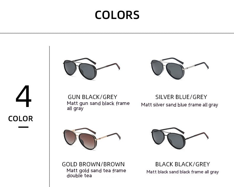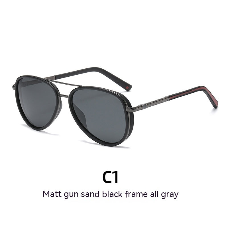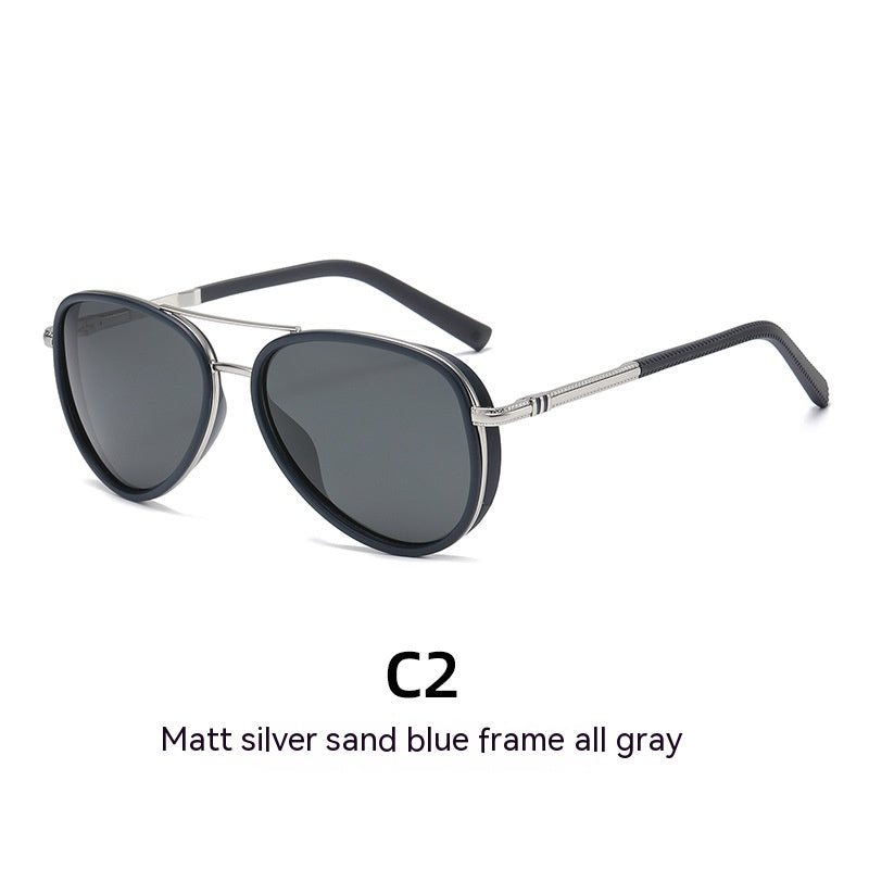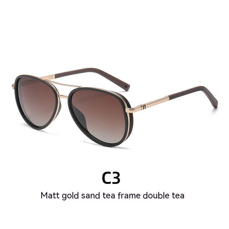 Fashionable Metal Double Beam Frame Trendy Retro Men's Polarized Sunglasses