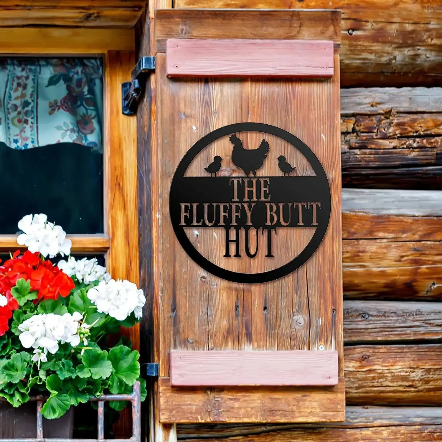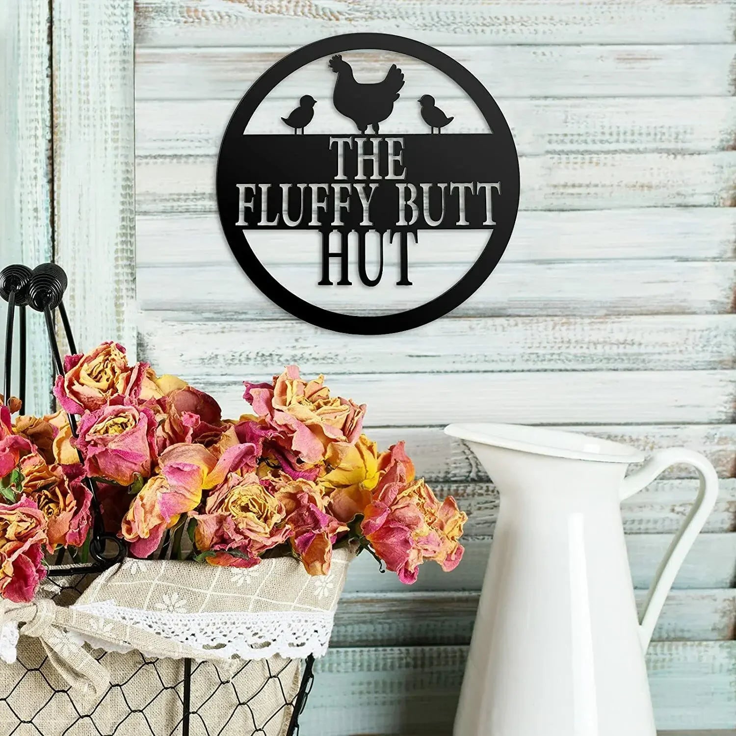 HelloYoung Chicken Coop Sign Fluffy Butt Hut Metal Sign Funny Chicken Coop Decor Iron Crafts Hanging Wall Art
