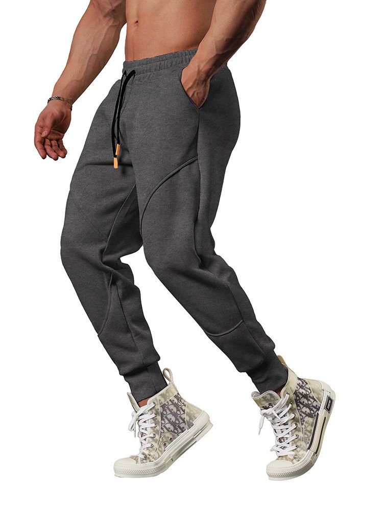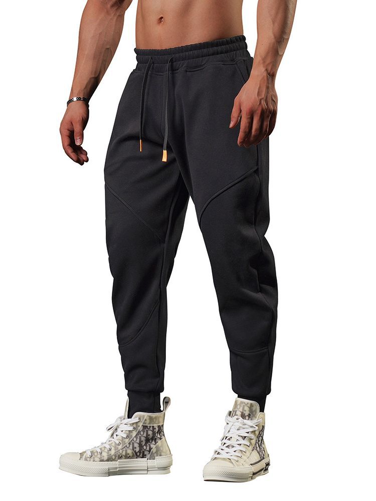 Men's Casual Fleece-lined Terry Fabric Stitching Ankle-tied Cropped Pants