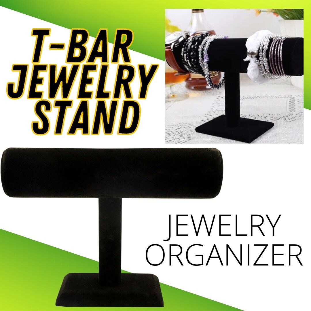 T-Bar Stand for Necklaces & Bracelets Black velvet Holder Organizer Jewelry Watches Display Tier Stand by KTATMARKETING